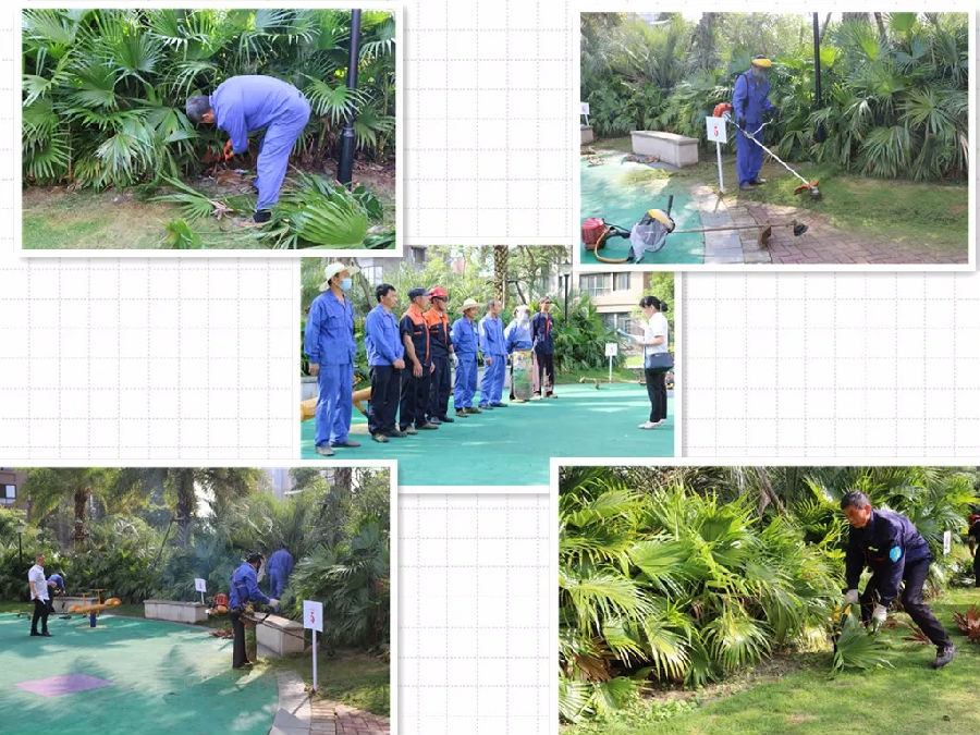 ▲綠化美工的師傅們施展各自的實(shí)景綠化養(yǎng)護(hù)、造型技能。