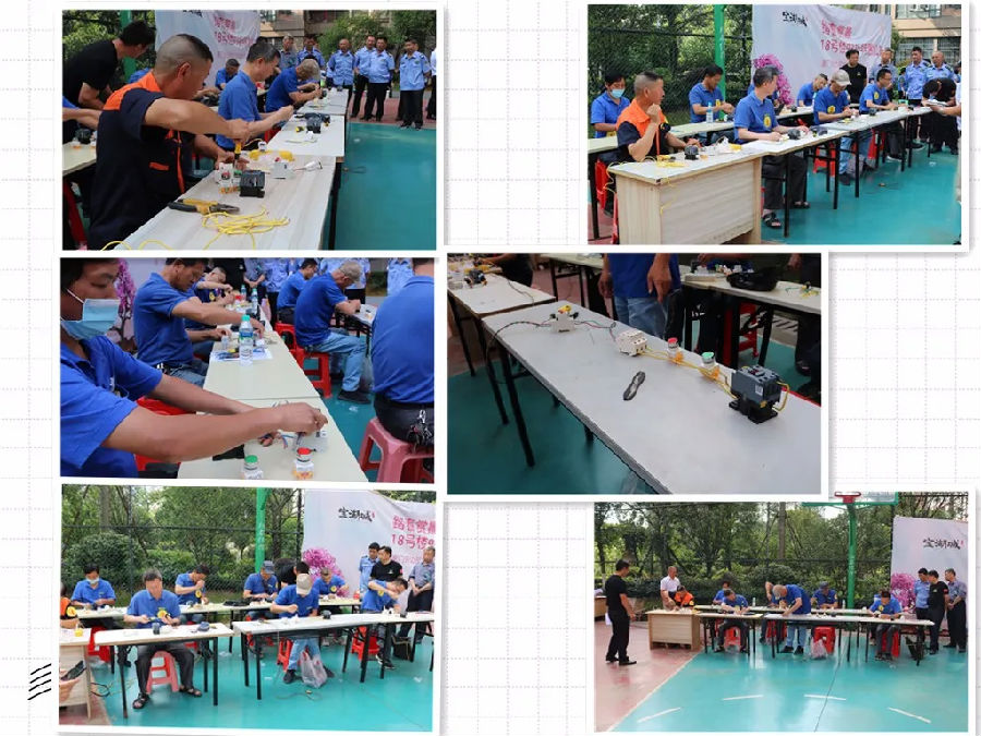 ▲來(lái)自各個(gè)小區(qū)的電工師傅們正在比拼鏈接電源開(kāi)關(guān)通電等必備技能。
