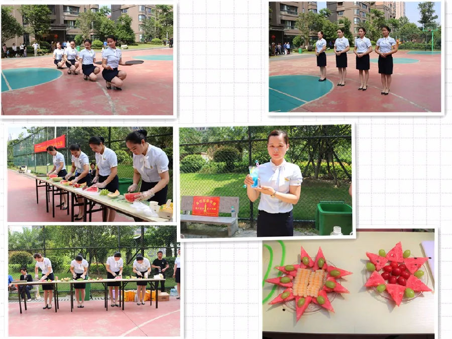 ▲案場(chǎng)客服人員展示形像禮儀、水果拼盤、飲品調(diào)制等技能