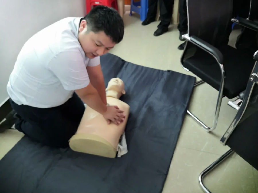 ?? 在實(shí)操環(huán)節(jié),胡洪國(guó)主任醫(yī)師詳細(xì)講解了心肺復(fù)蘇的步驟,包括如何判斷呼吸意識(shí)、如何進(jìn)行胸外按壓以及如何開(kāi)放氣道等。用圖例展示和現(xiàn)場(chǎng)人體模型模擬操作相結(jié)合的方式,生動(dòng)、形象、直觀(guān)地對(duì)員工講解了心肺復(fù)蘇法三個(gè)階段九個(gè)步驟的基本操作要領(lǐng),使員工對(duì)現(xiàn)場(chǎng)相關(guān)的緊急救護(hù)常識(shí)有了較詳細(xì)的了解。??