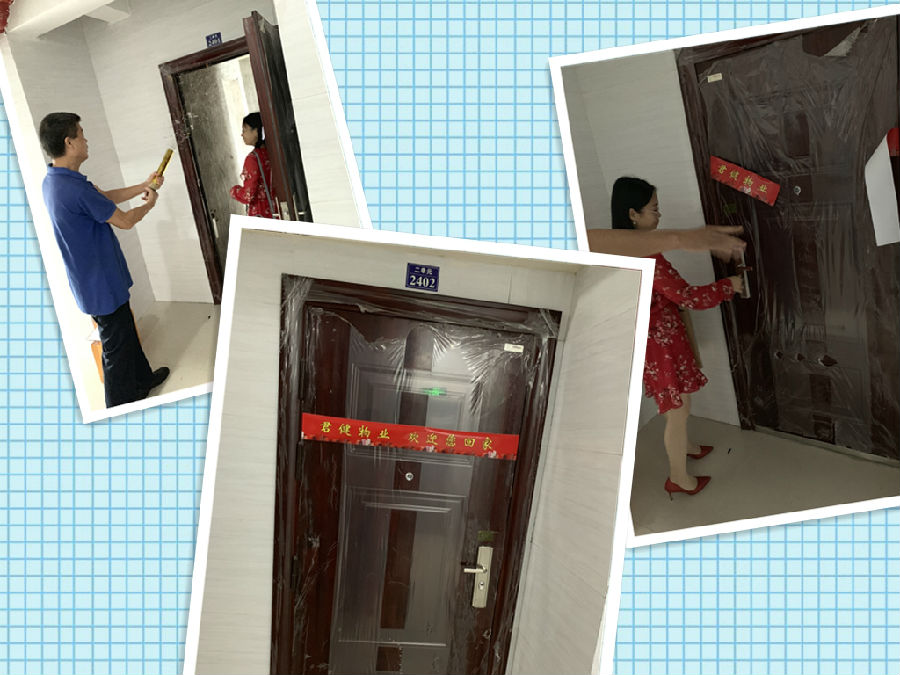 ▲圖為工作人員正在為業(yè)主尋找房子鑰匙